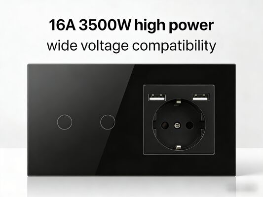The switch handles maximum current of 10A with load capacity of 3-300W per gang, ideal for controlling lighting fixtures and small appliances. The socket supports 16A maximum current and 3500W power rating, capable of handling high-power devices including kitchen appliances and power tools.
