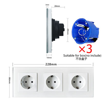 The Wall Mounted Switch Socket is an essential electrical accessory that combines modern aesthetics with robust functionality. Featuring a high-quality tempered glass panel, this switch and socket plate offers exceptional durability and a sleek, contemporary appearance suitable for any room setting.