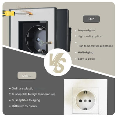 Designed for residential, commercial, and industrial applications, the UBARO Switch and Socket is perfect for living rooms, bedrooms, kitchens, offices, hotels, and public spaces. The built-in child safety shutter provides enhanced safety for homes with young children.