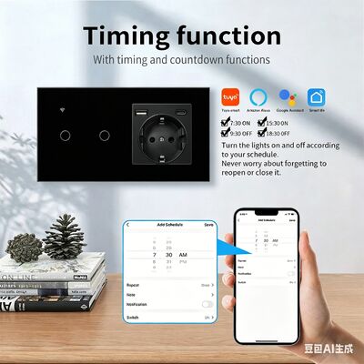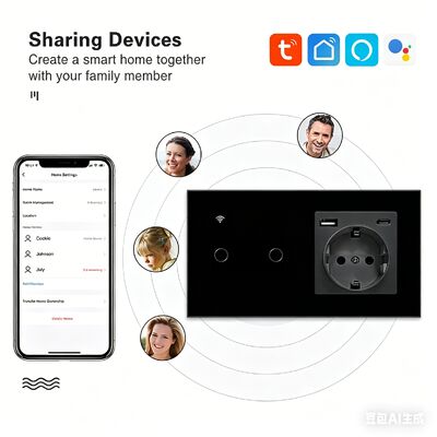 This versatile Smart Switch and Socket combines essential lighting control and power outlet functions with advanced smart technology. Featuring a sleek black PC plastic housing, it seamlessly integrates with modern interiors while providing intelligent control options for enhanced convenience in home or office environments.